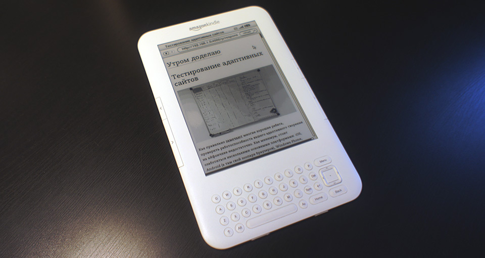 Kindle Keyboard (он же Kindle 3) — читалка от Амазона с e-ink экраном (без тача) и qwerty-клавиатурой. В читалку встроен экспериментальный браузер.