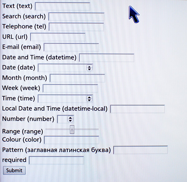 Браузер в зачаточной форме поддерживает некоторые типы полей ввода: