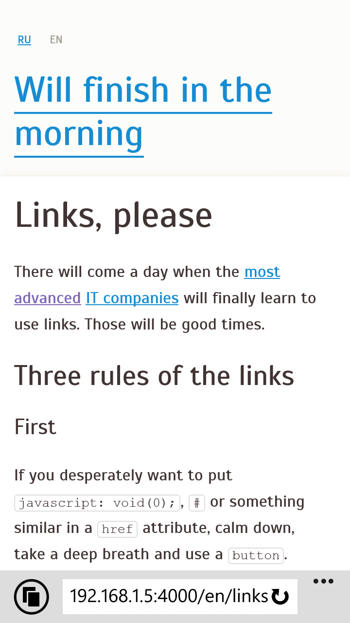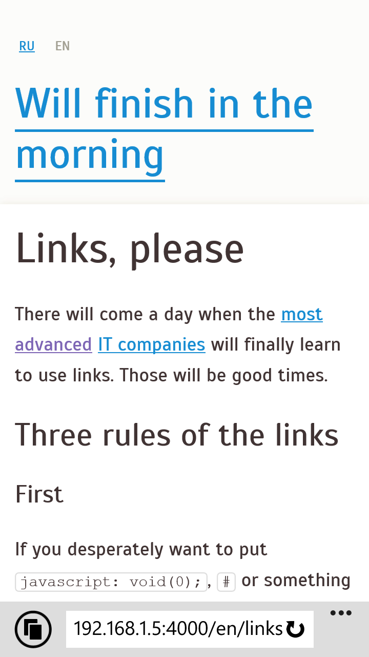 Однажды чуваки из Оперы предложили вместо мета-тега <meta name="viewport" ...> использовать цсс-ный @viewport { ... }. Как, зачем и почему, послушайте у ппк, а я расскажу, зачем его стоит начать использовать прямо сейчас.